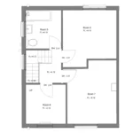 Key architectural components such as walls, openings, radiators, sanitary fixtures, and rain pipes and downpipes were modelled using standard Revit library items of appropriate size. General massing for kitchen cabinets was included to support spatial understanding.